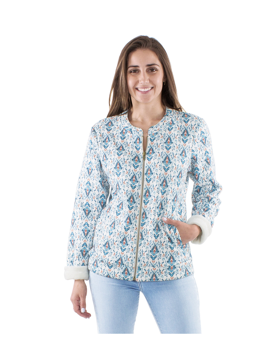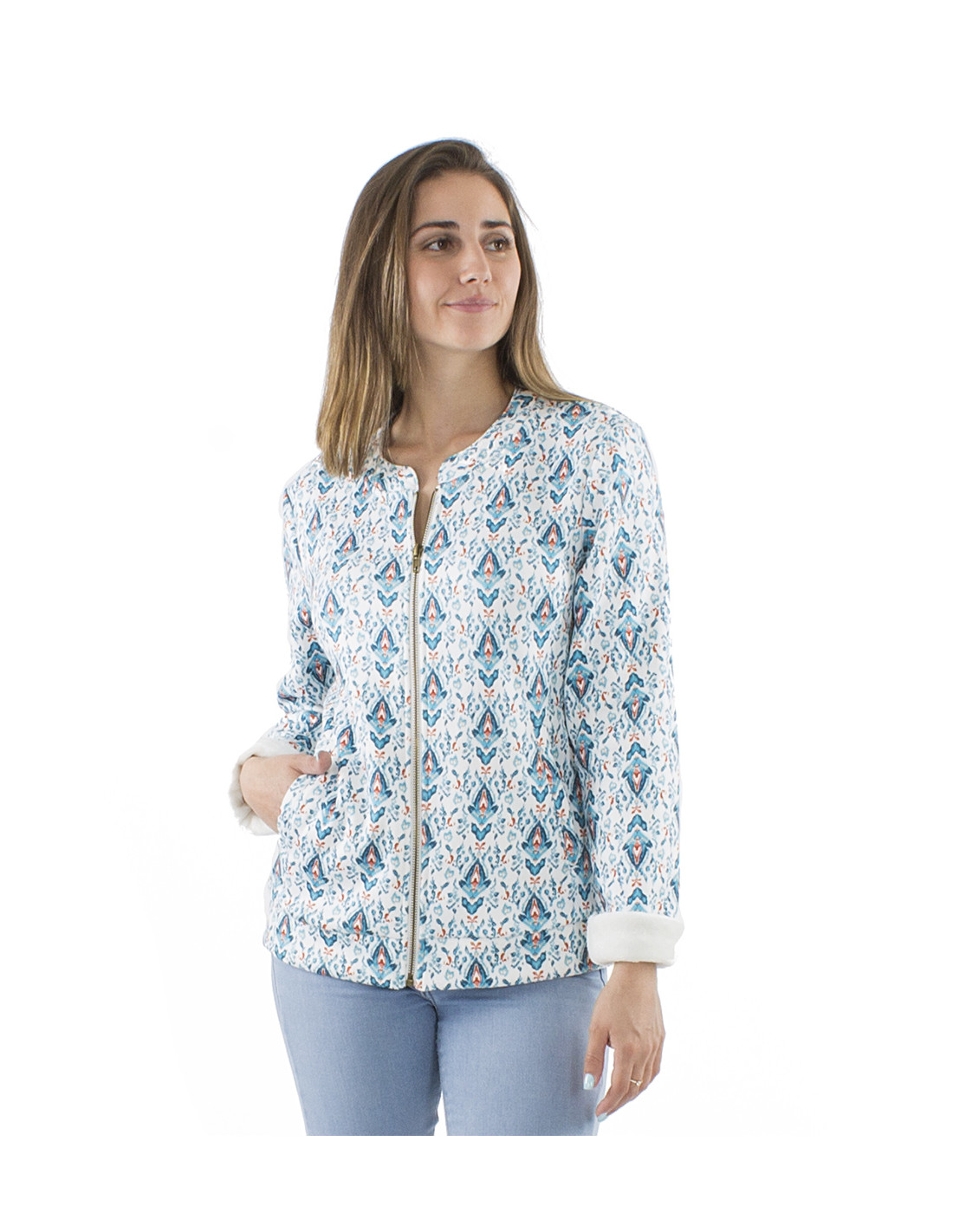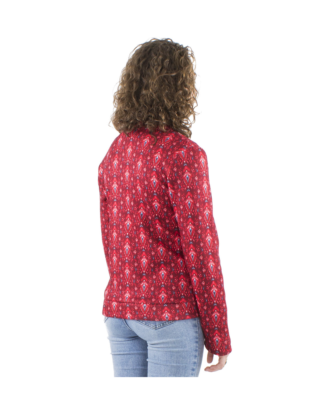 Veste maille 95% polyester 5% elasthanne fourrée imprimé Ikat