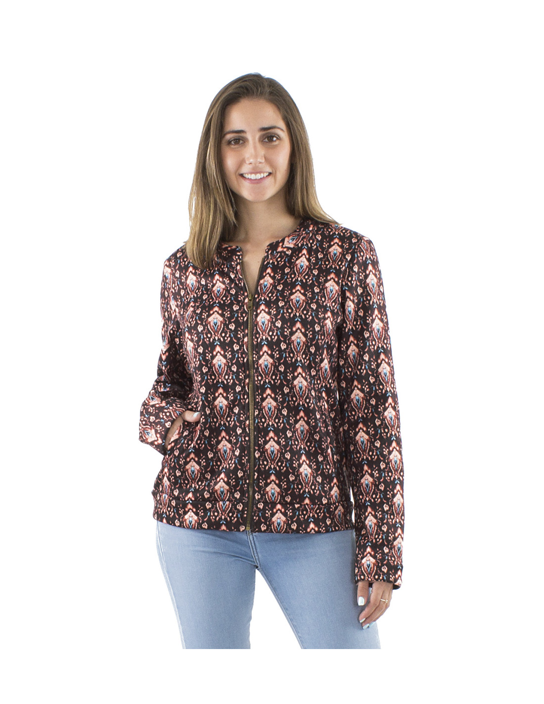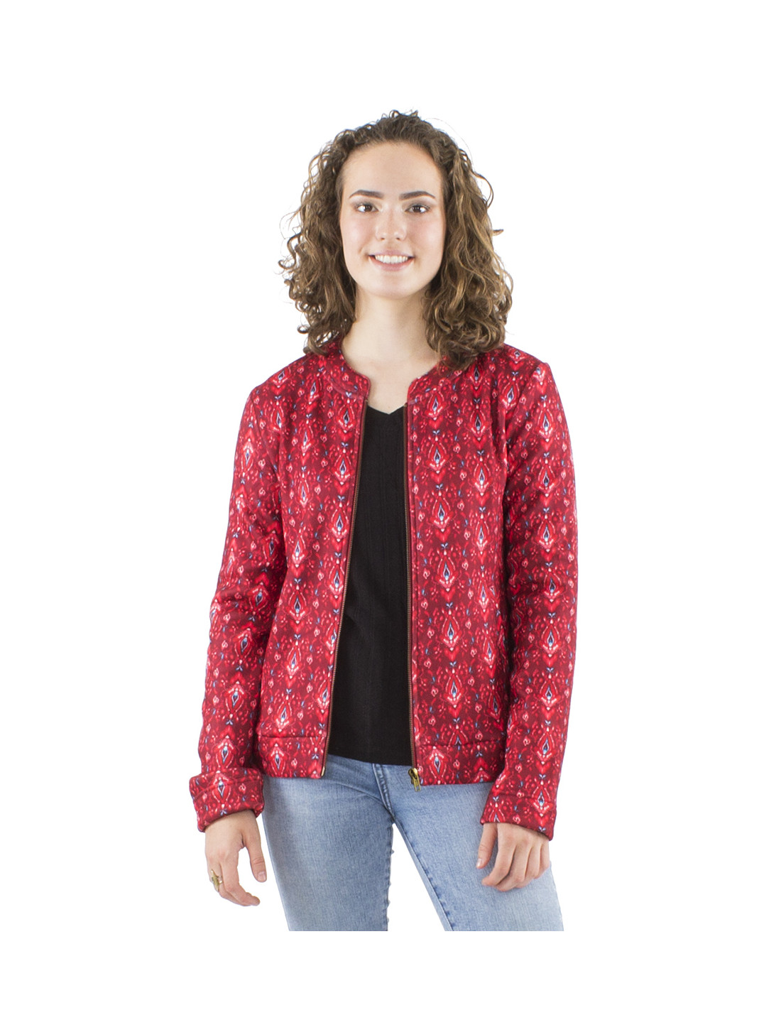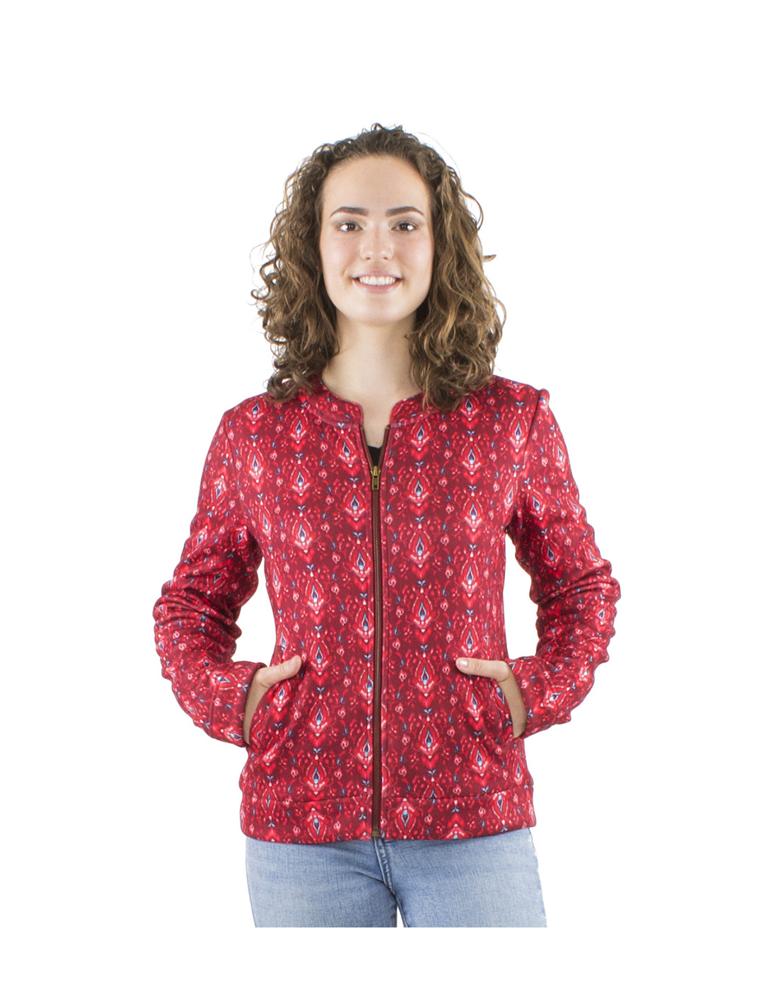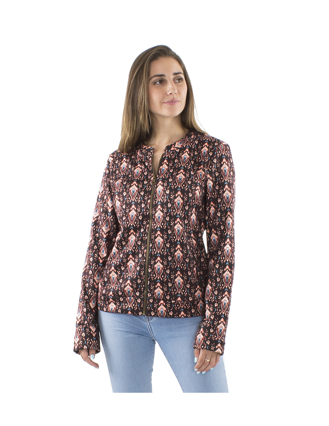 Veste maille 95% polyester 5% elasthanne fourrée imprimé Ikat