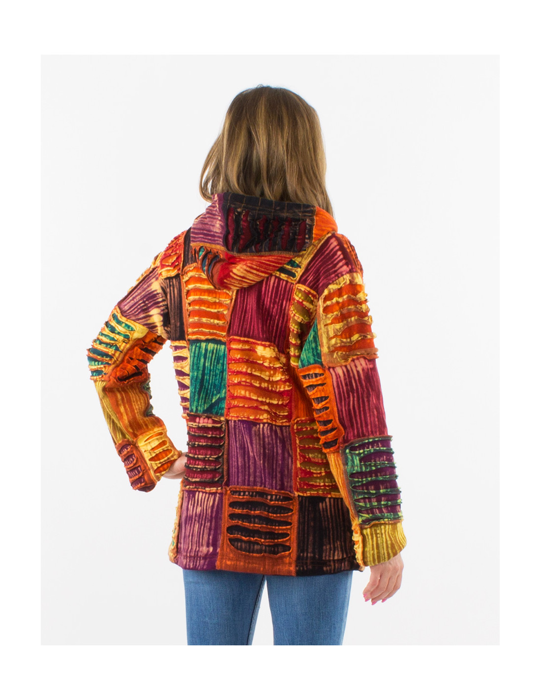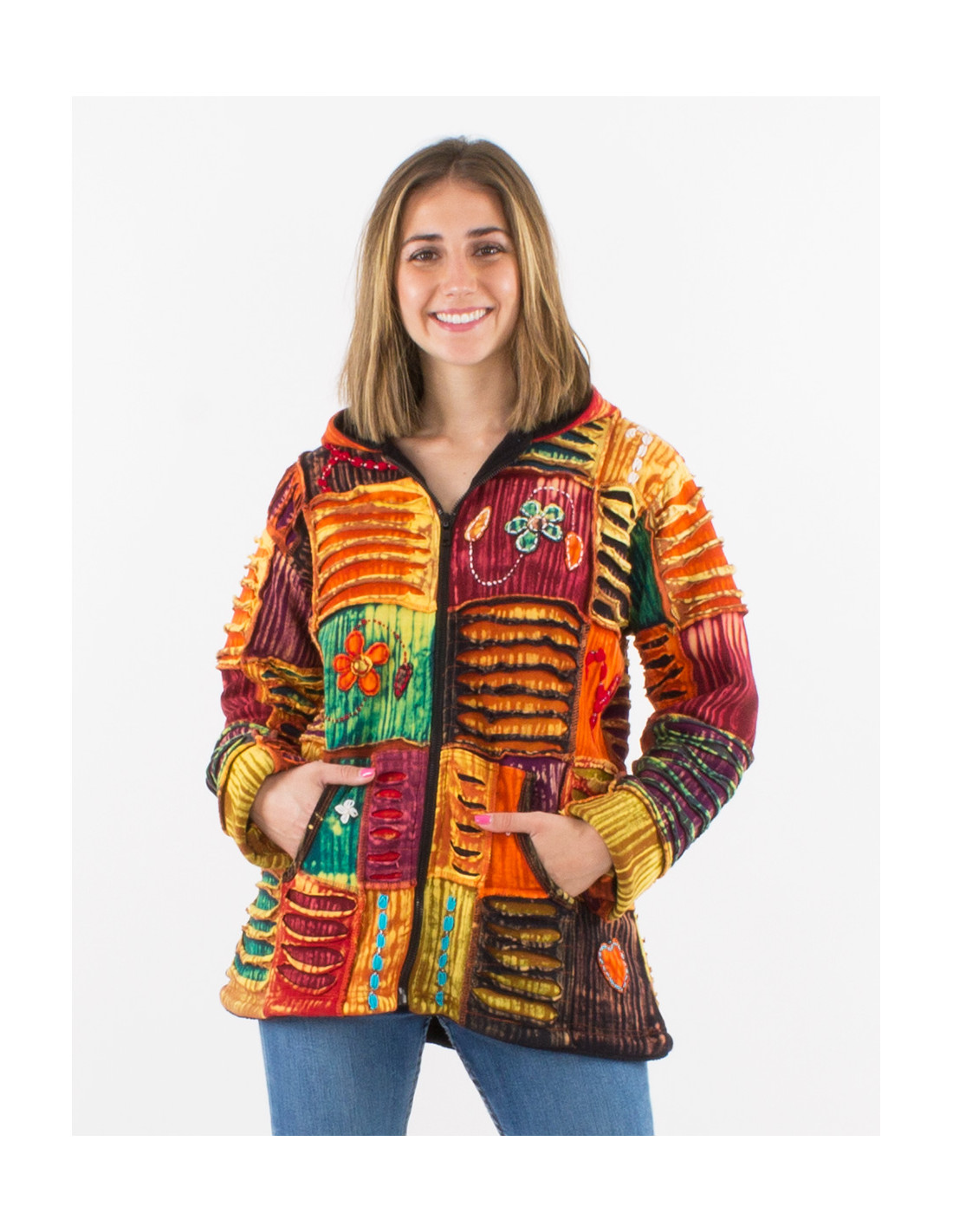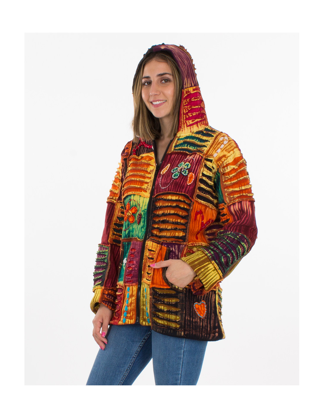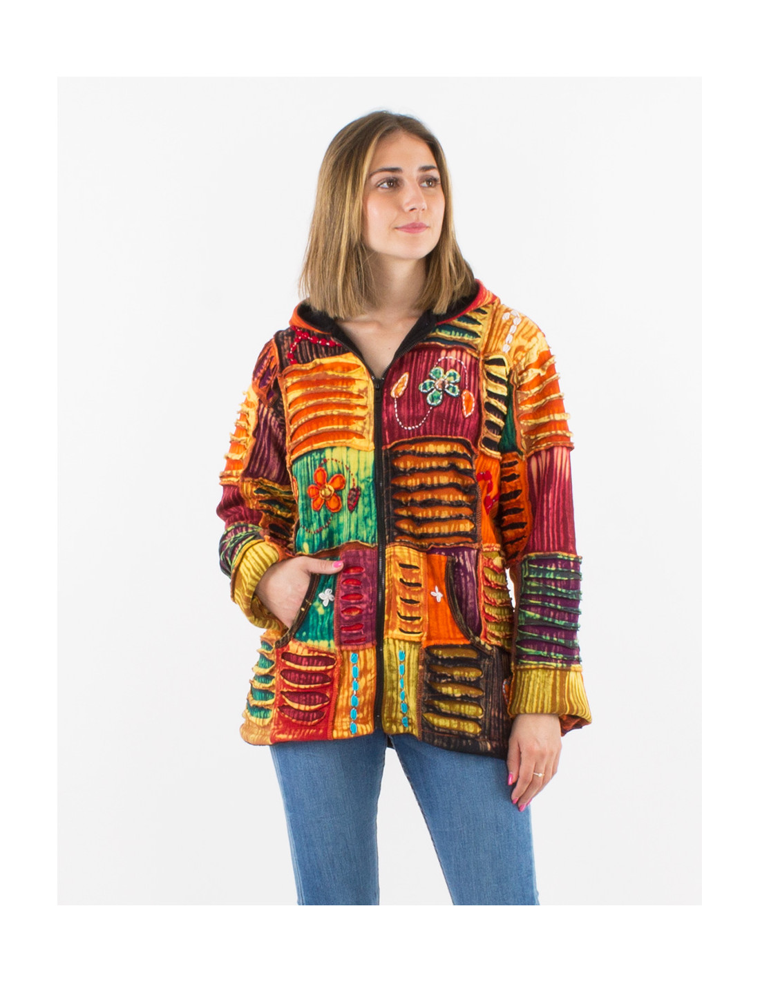 Veste maille coton patchwork sw brodé doublure polaire à capuche