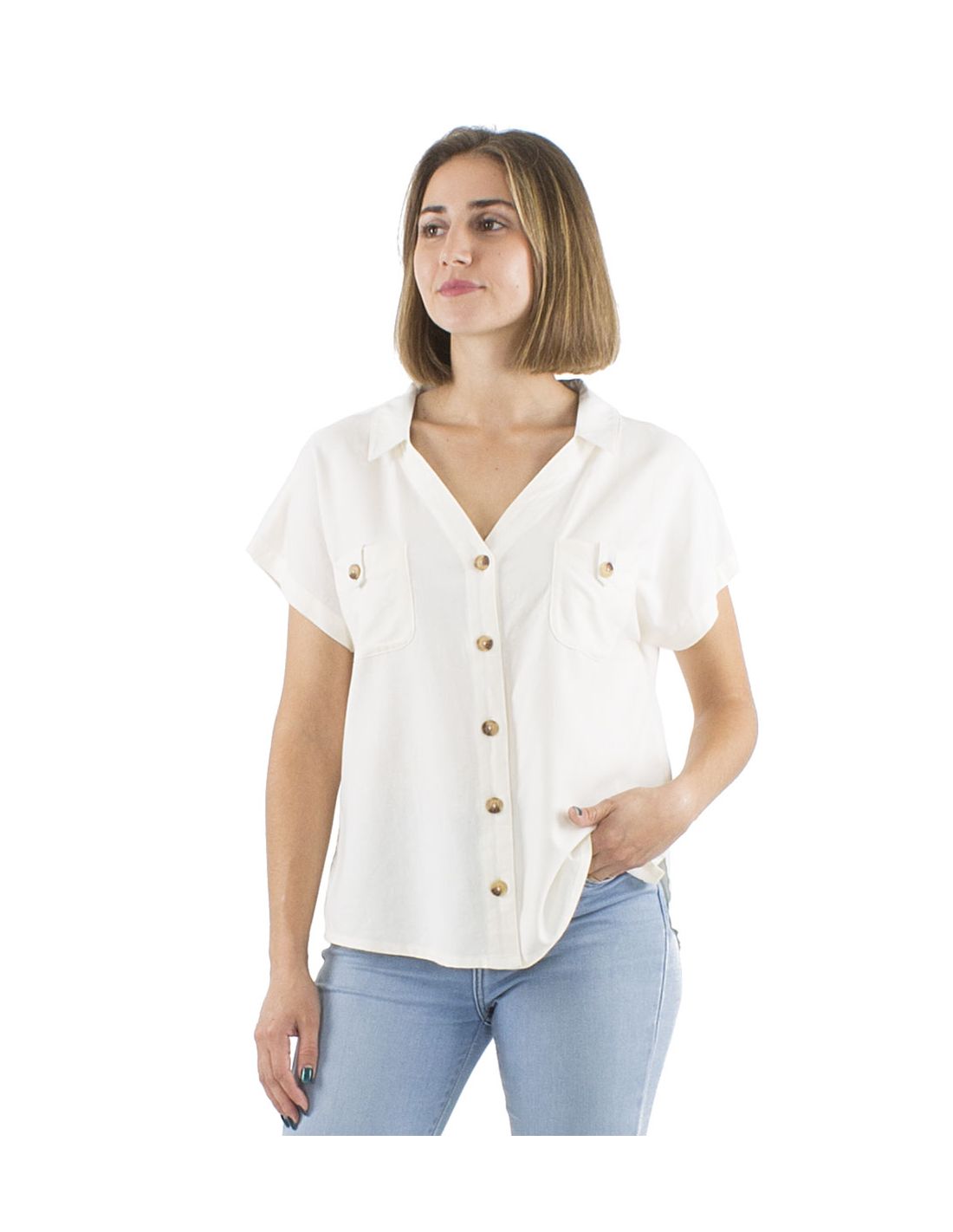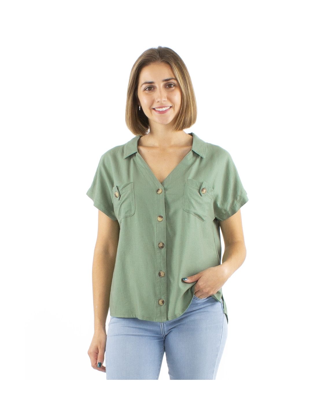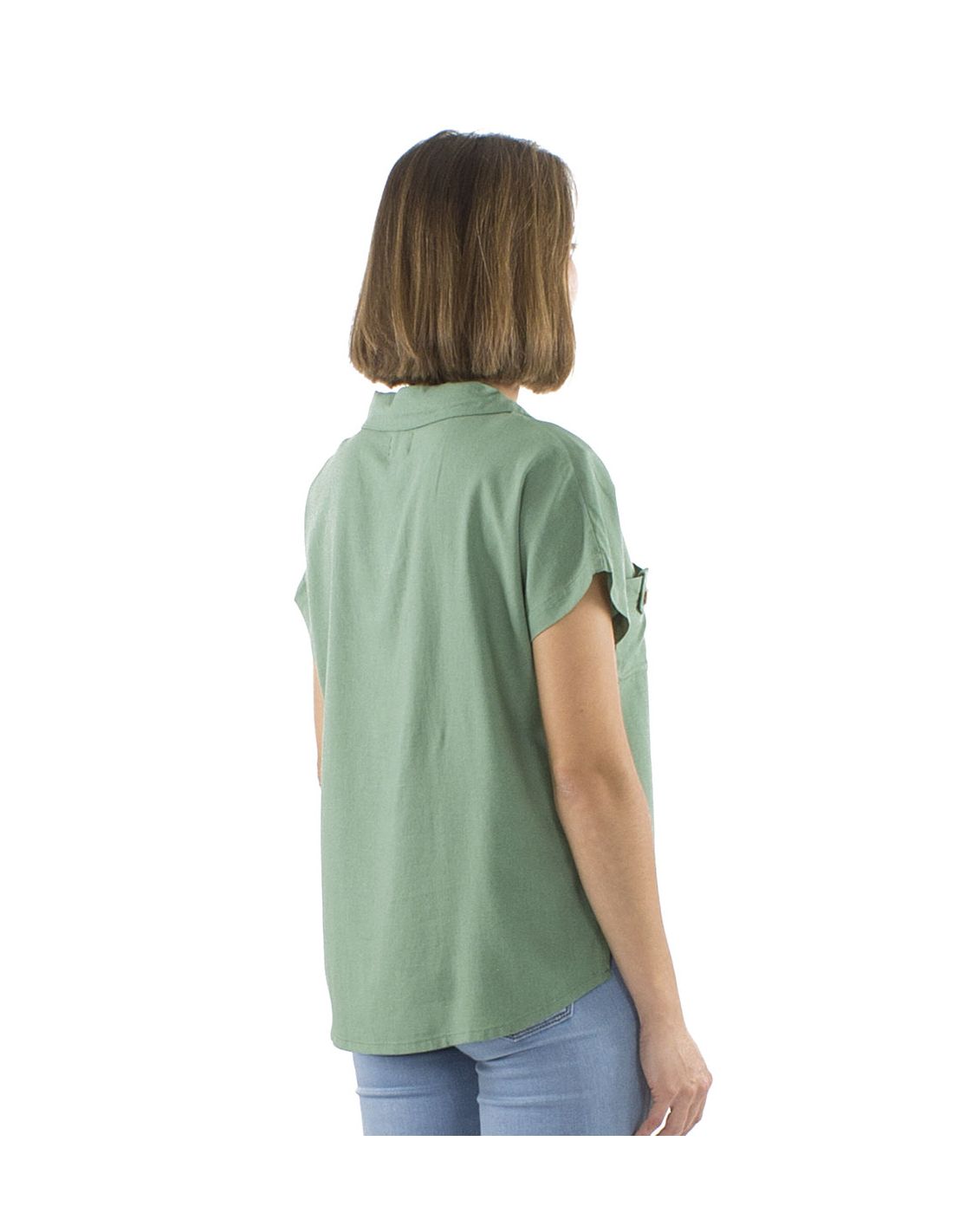 Chemisier 54% Lin 46% Viscose Boutonne Avec Poches Poitrine
