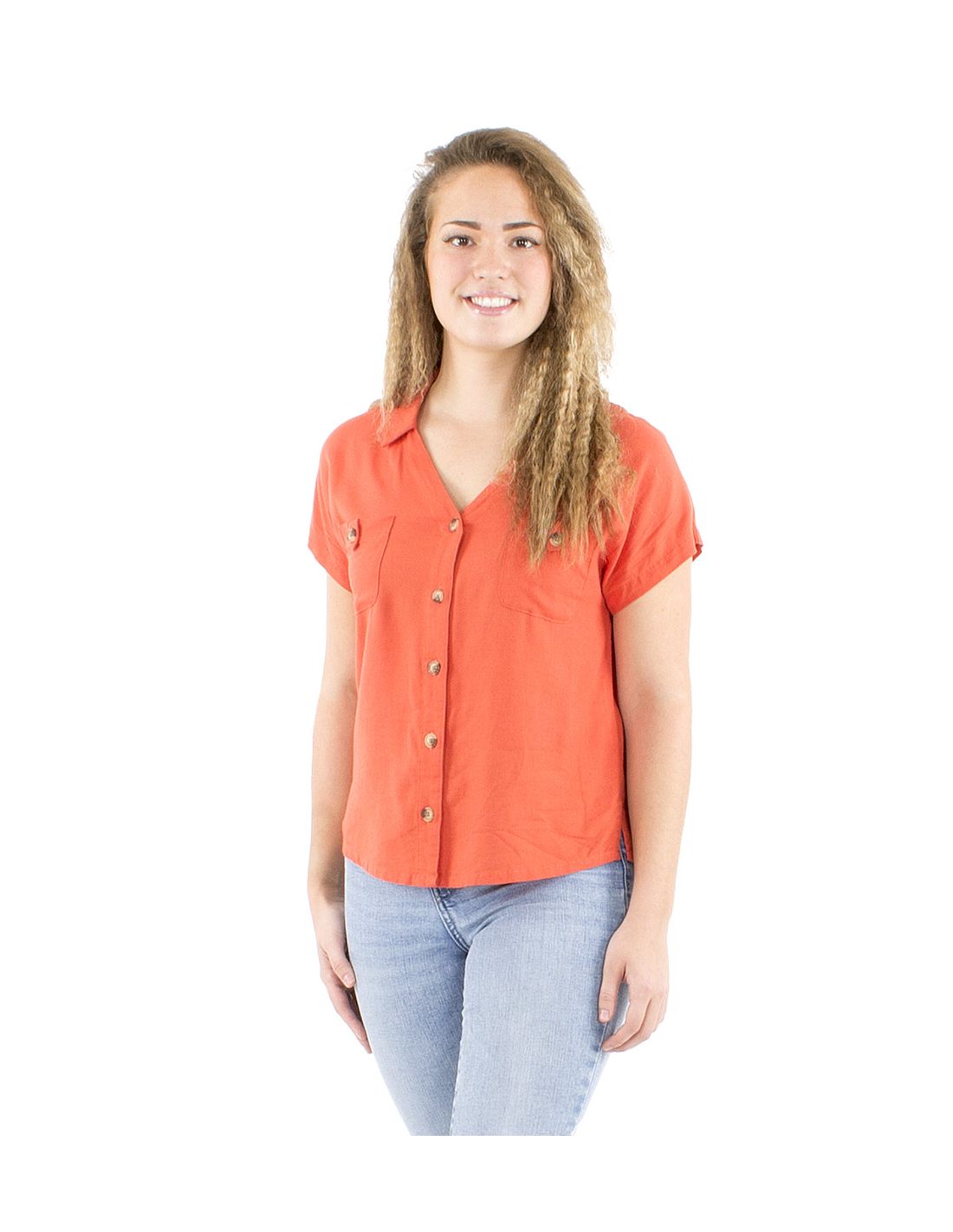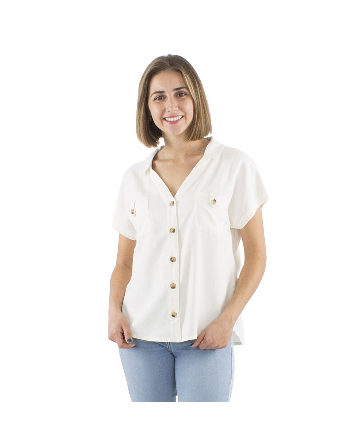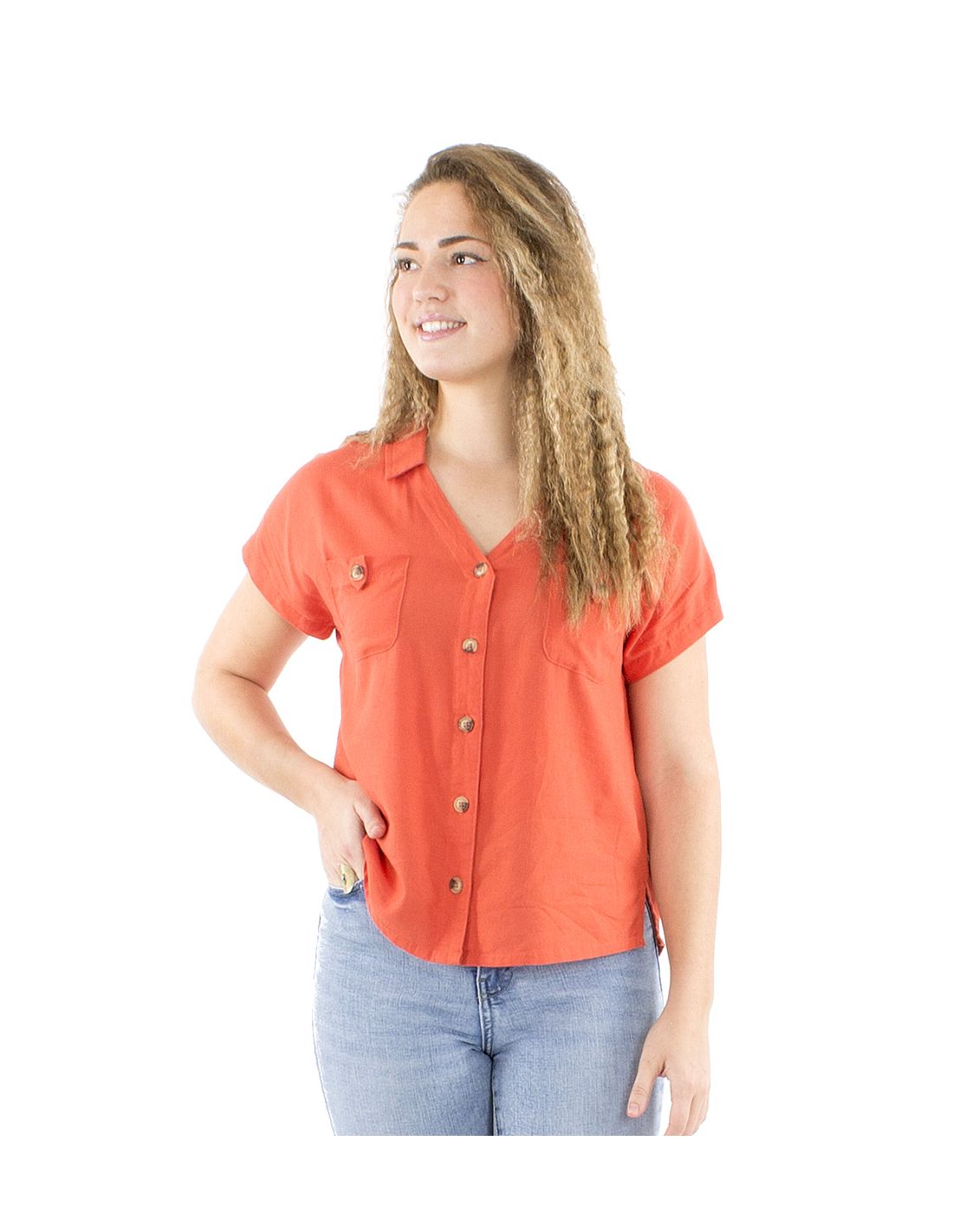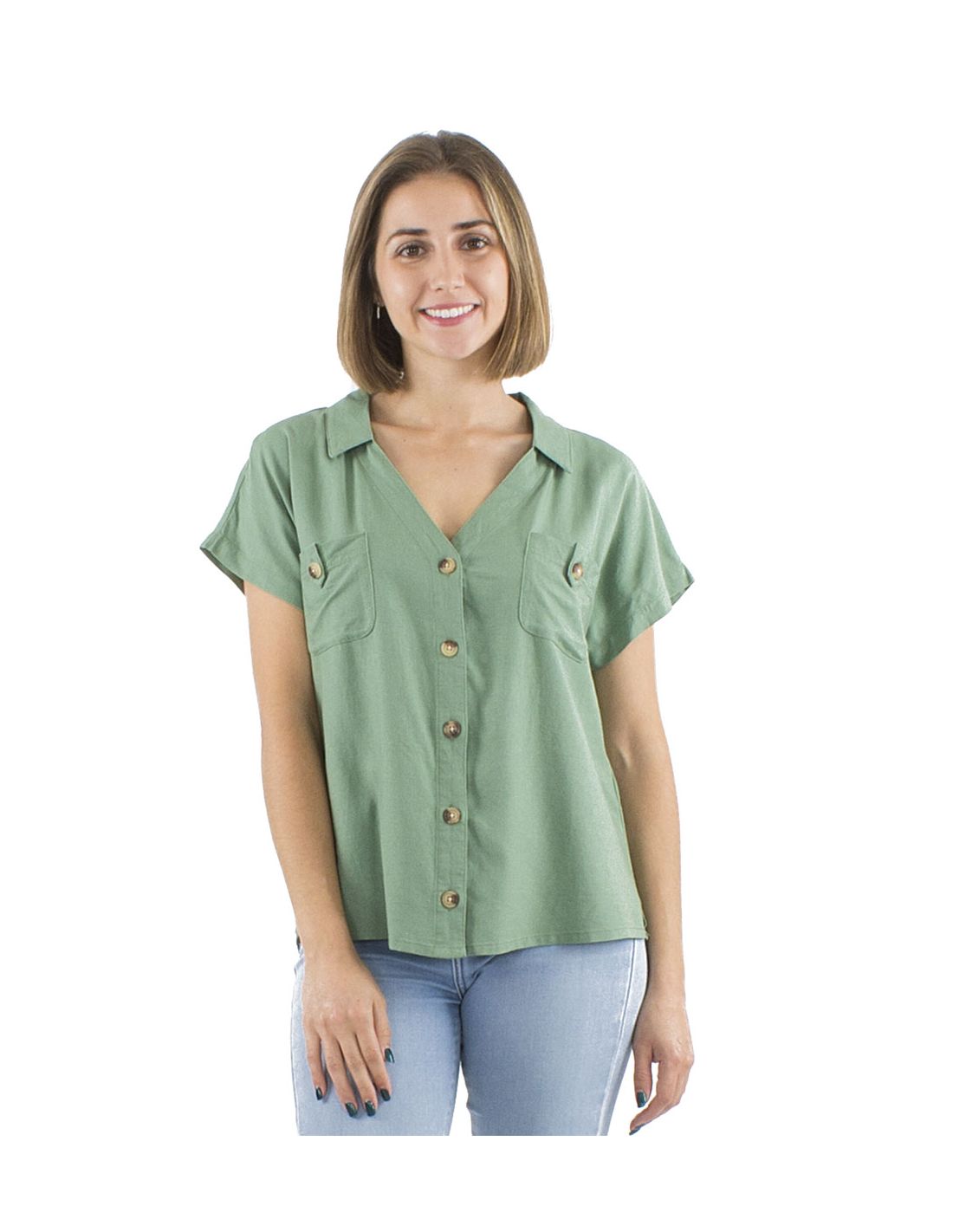 Chemisier 54% Lin 46% Viscose Boutonne Avec Poches Poitrine