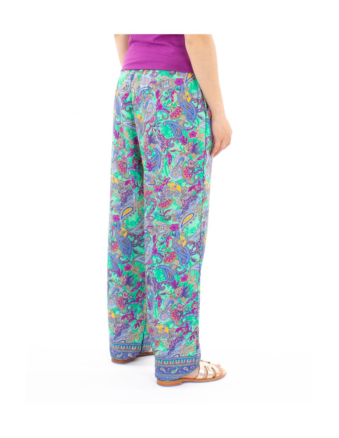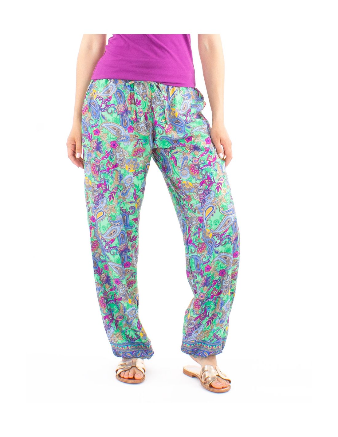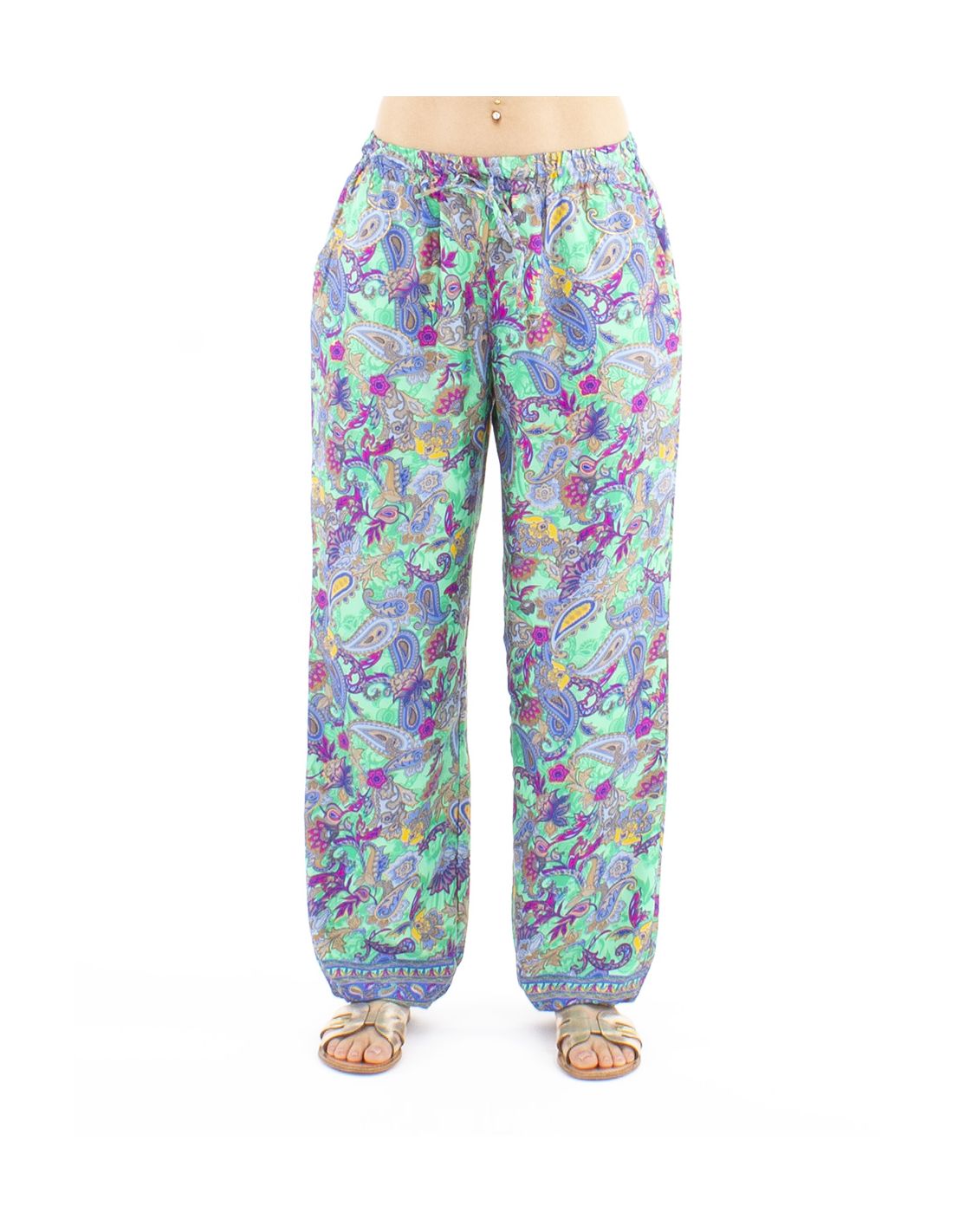 Pantalon Polyester Elastique Cheville Imprime Dore P08