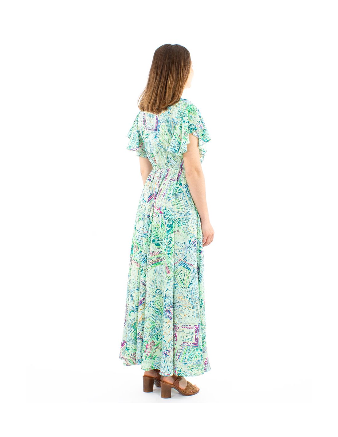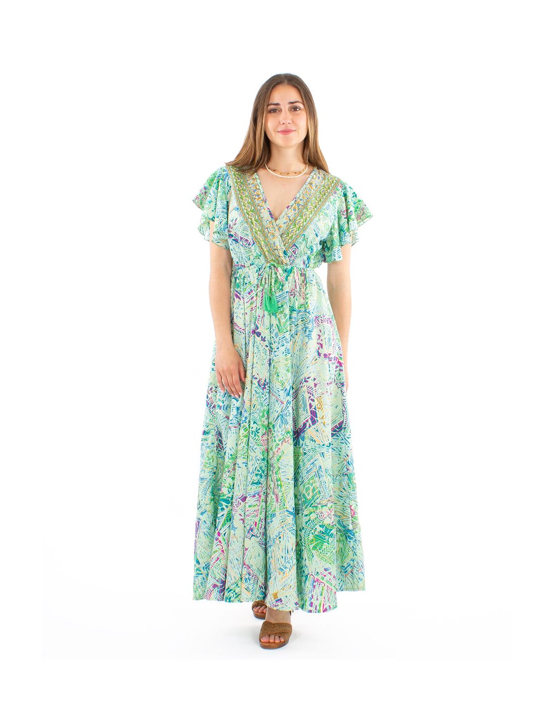 Robe Longue Polyester Cache Cœur Imprime Dore P01