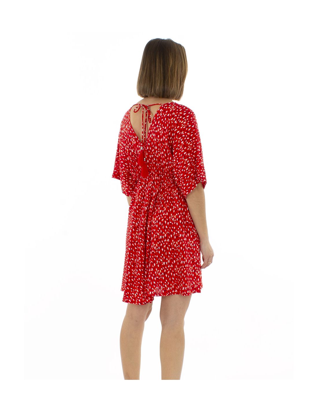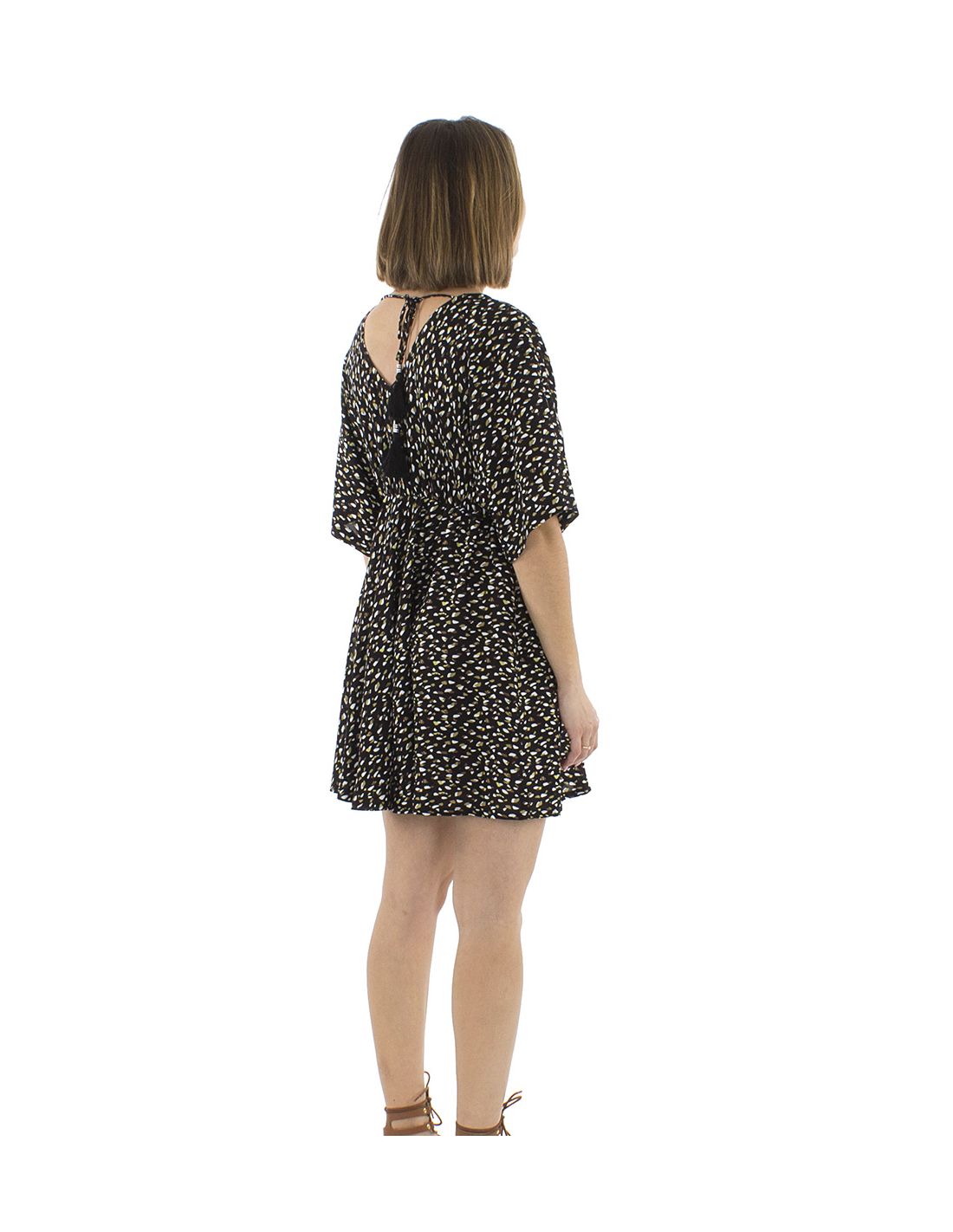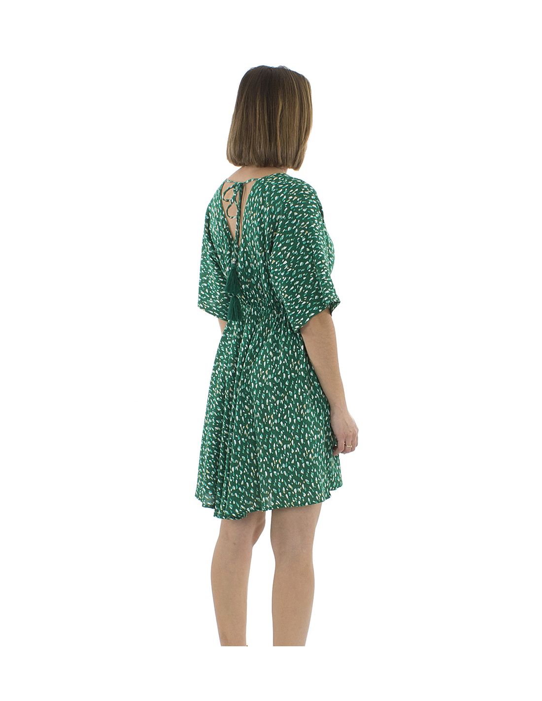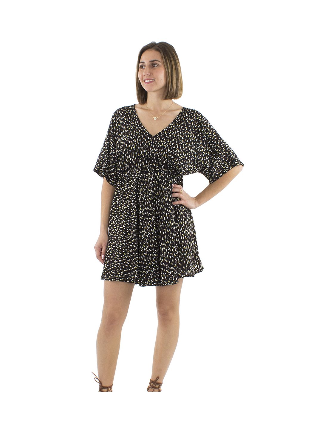 Robe Viscose Courte Imprime Feline Elastique Taille Manches Courtes