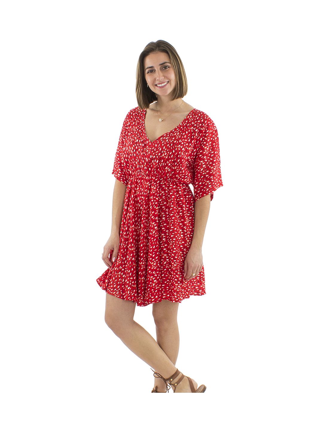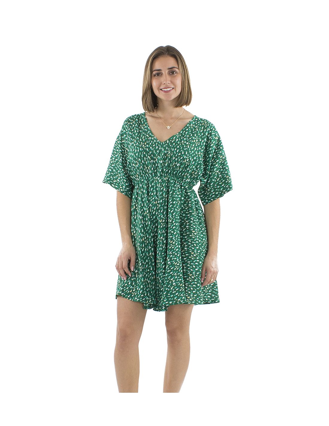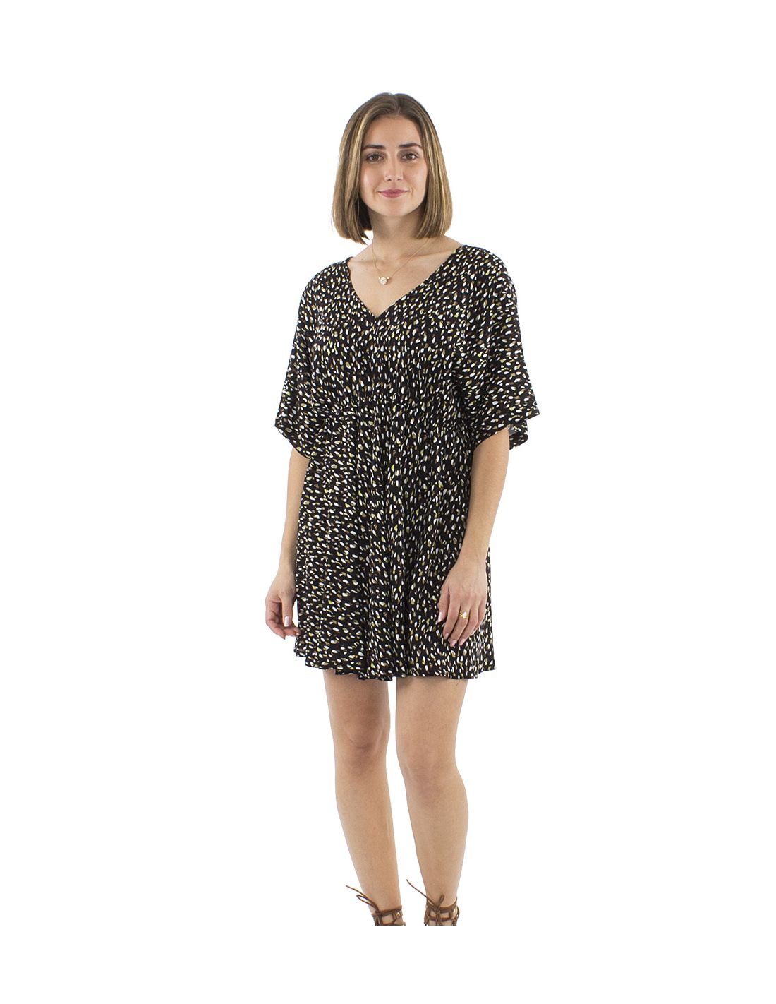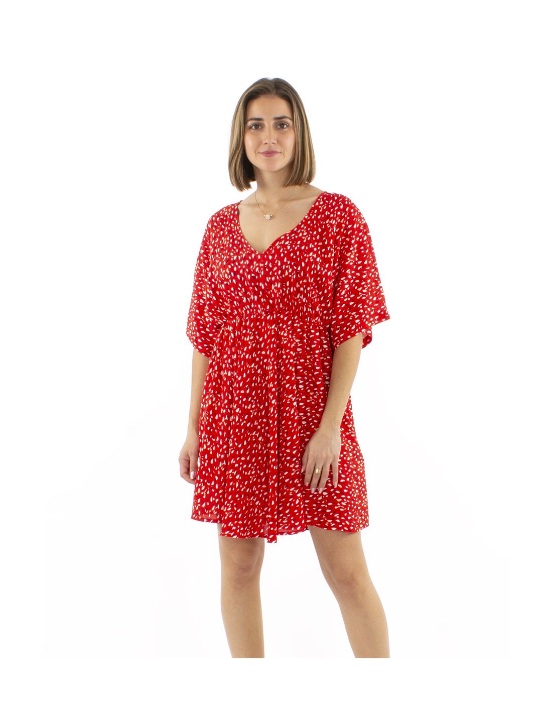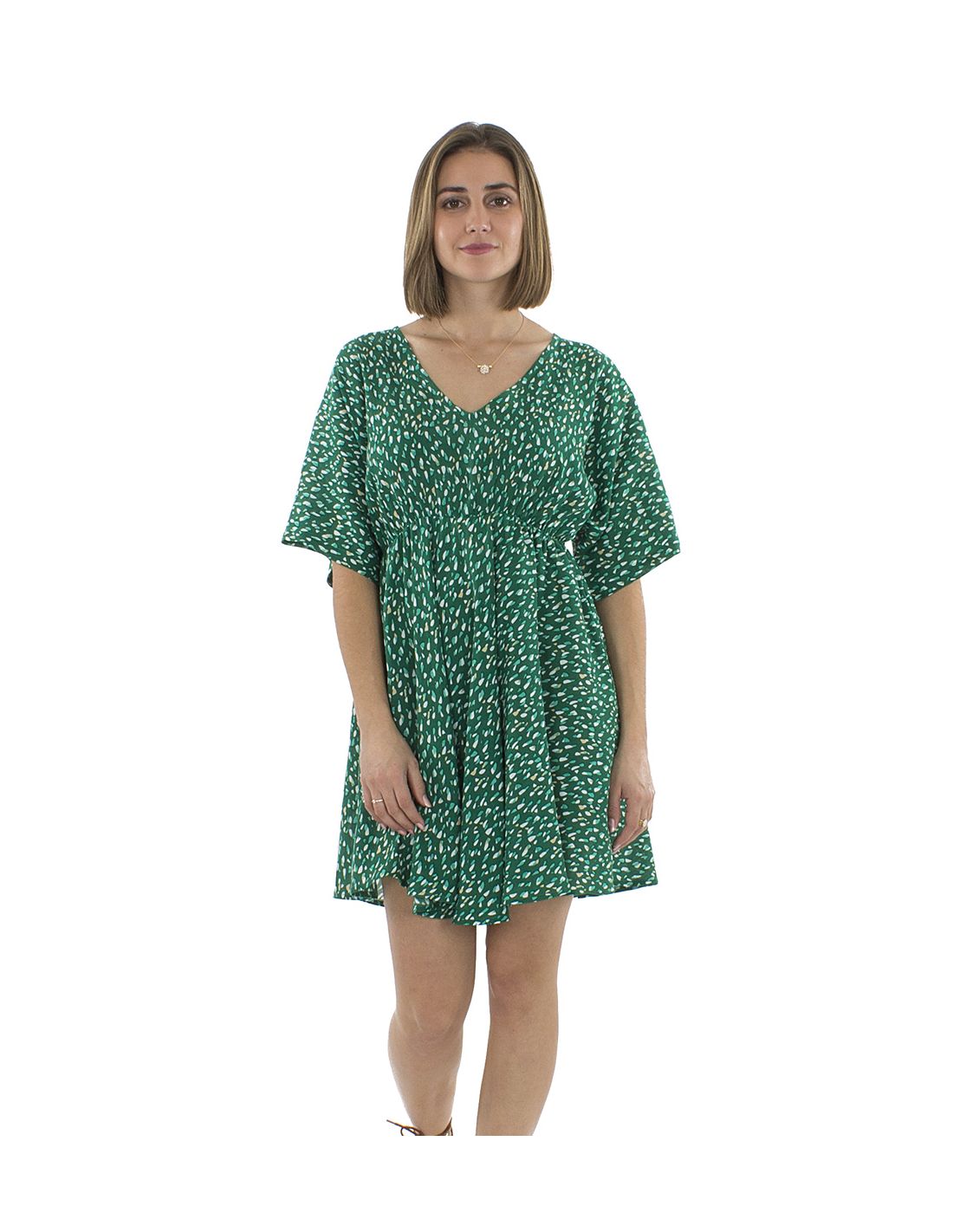 Robe Viscose Courte Imprime Feline Elastique Taille Manches Courtes